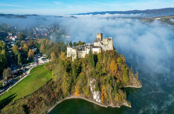 Miejscowość letniskowa położona na zachodnim krańcu Pienin Czorsztyńskich. Dawny Czorsztyn leżący u podnóża zamku, został latach 90-tych XX wieku zalany wodami jeziora. Obecny Czorsztyn leży na wzgórzu powyżej zamku. Największą atrakcję miejscowości stanowią ruiny XIV-wiecznego zamku. Warownię wzniesiono za panowania króla Kazimierza Wielkiego. Zamek miał za zadanie strzec polsko-węgierskiej granicy. Zamek został częściowo zrekonstruowany. Mieści się w nim ekspozycja muzealna. Zamkiem opiekuje się Pieniński Park Narodowy i udostępnia go do zwiedzania za niewielką opłatą. Poniżej zamku znajduje się czynna w sezonie letnim przystań gondolowa. Z kolei u szczytu Czorsztyna, na drugim jego krańcu, przy wejściu na Halę Majerz, warto zwiedzić jeden z pawilonów PPN. W środku znajduje się udostępniana do zwiedzania za darmo wystawa dotycząca pasterstwa i ekosystemu łąk i pastwisk w Pieninach. Nieopodal pawilonu warto odwiedzić prawdziwą góralską bacówkę i zakupić w niej łoscypki.
